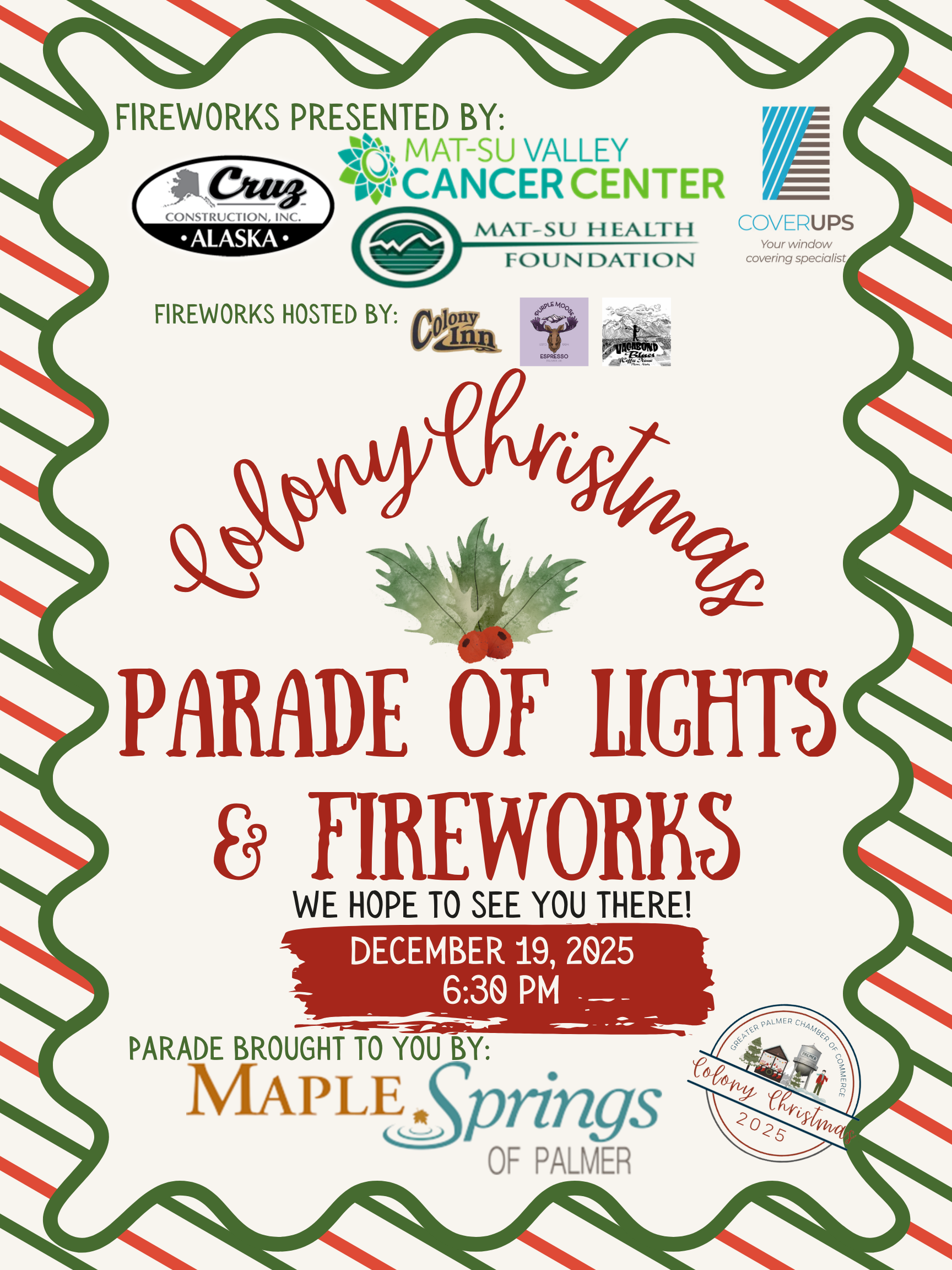 We’re hopeful the streets will be filled with families, friends, and festive cheer as we continue celebrating Colony Christmas for one more special night. Bundle up, grab some hot cocoa, and join us for an evening of lights, smiles, and community spirit—because a little wind can’t stop the magic of the season in Palmer!