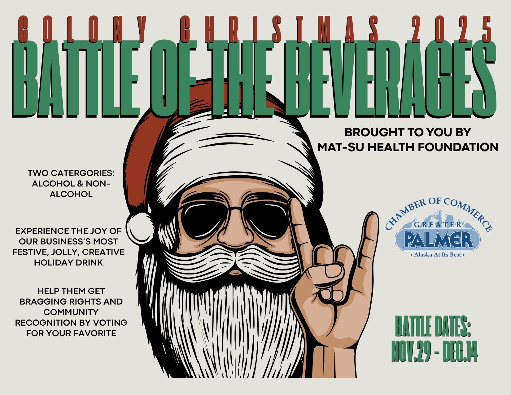 Raise your glasses, Palmer—Battle of the Beverages is back for its 2nd annual showdown! This festive community competition invites you to explore local businesses, sample their signature holiday drinks, and vote for your seasonal favorite.